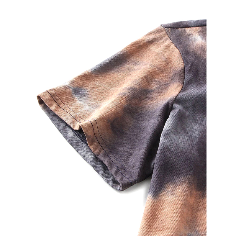 Material: 100% CottonLength: Mid-LengthSleeve Type: Regular Pattern: PrintEmbellishment: Tie DyedSleeve Length: Short SleeveNeckline: Round NeckSeason: Summer